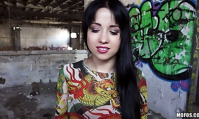 Colorful Russian girl sucks a fuck-stick in public for some currency