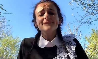 Young innocent schoolgirl experiences sharking action during the afternoon