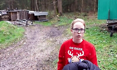 Skinny ugly whore gets long milky dick in her deserted cave