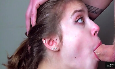 Sexy bimbo with muddy mind makes her lover cum in her jaws