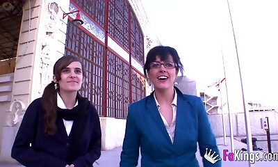Pablo Ferrari has his beefstick shared by Montse and Ainara