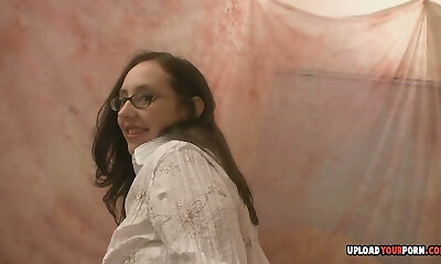 Casual sex with a geeky woman finishes with a major facial after doggystyle hotness