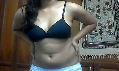 Ardent black head from India stripteases and flashes her funbags