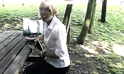 Blonde hirsute granny outdoor anal