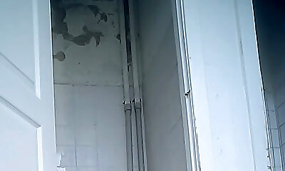 Mature Asian lady in the shabby toilet room filmed on hidden cam