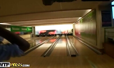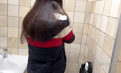 Big tits amateur steps into the toilet for a rear end fashion fucking through a glory hole