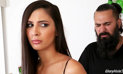 Mega busty babe Ella Knox gets messy facial after super hot glory hole sex