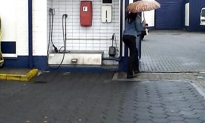 Lean and uber-sexy white stranger girl filmed from behind in the wc